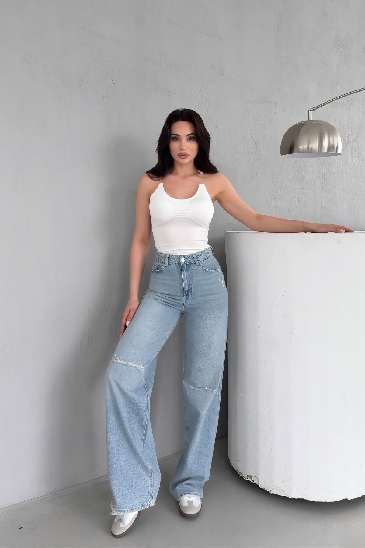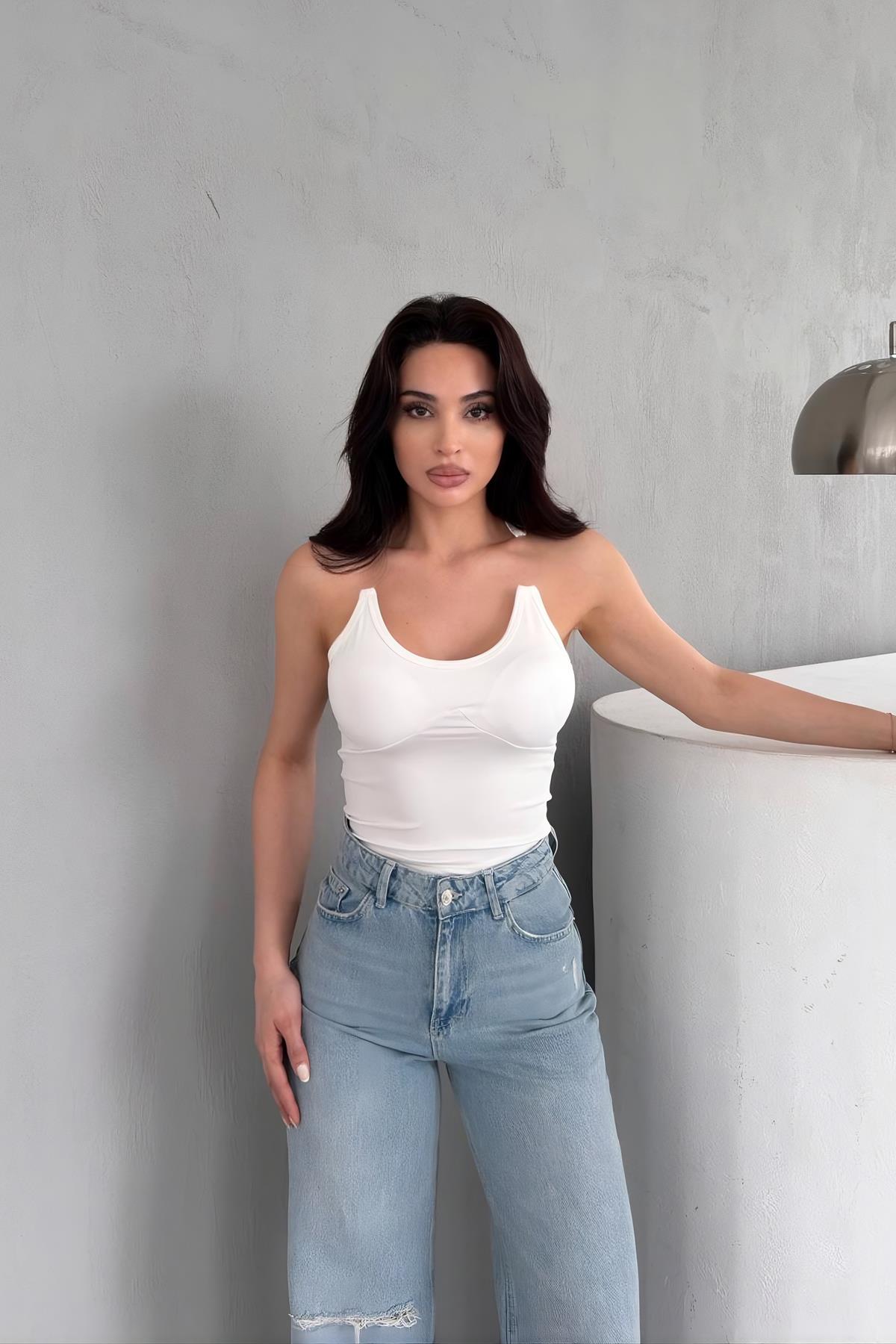 Beyaz Hayalet Askılı Cup Detaylı Bluz (RB3004)