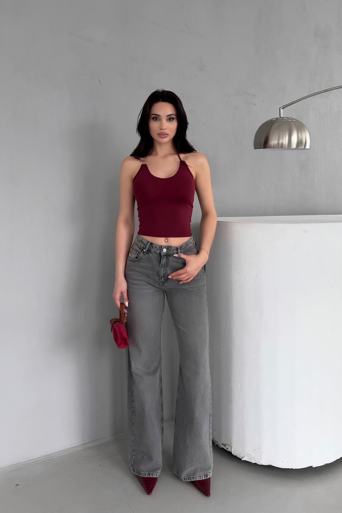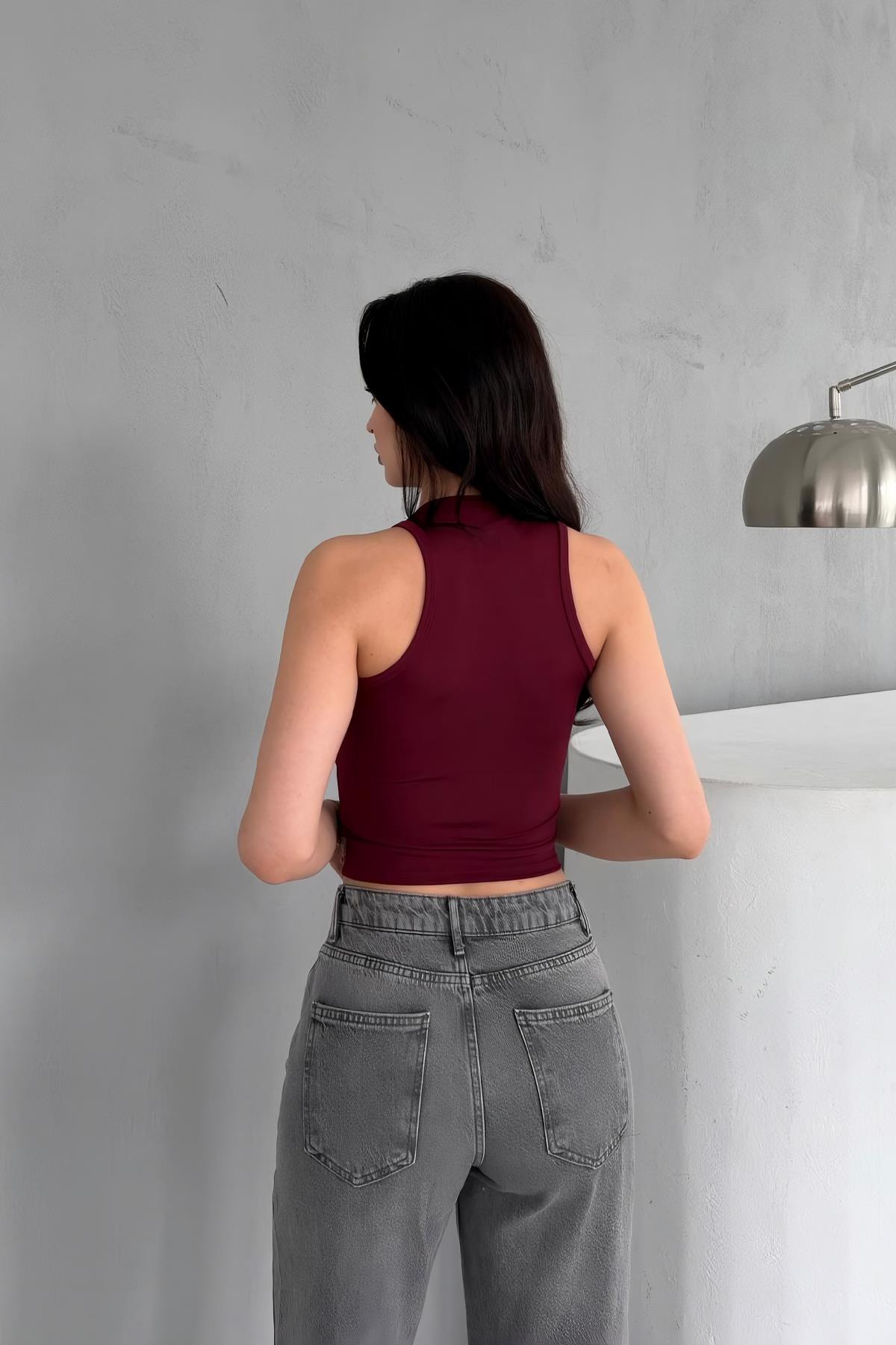 Bordo Hayalet Askılı Cup Detaylı Bluz (RB3004)