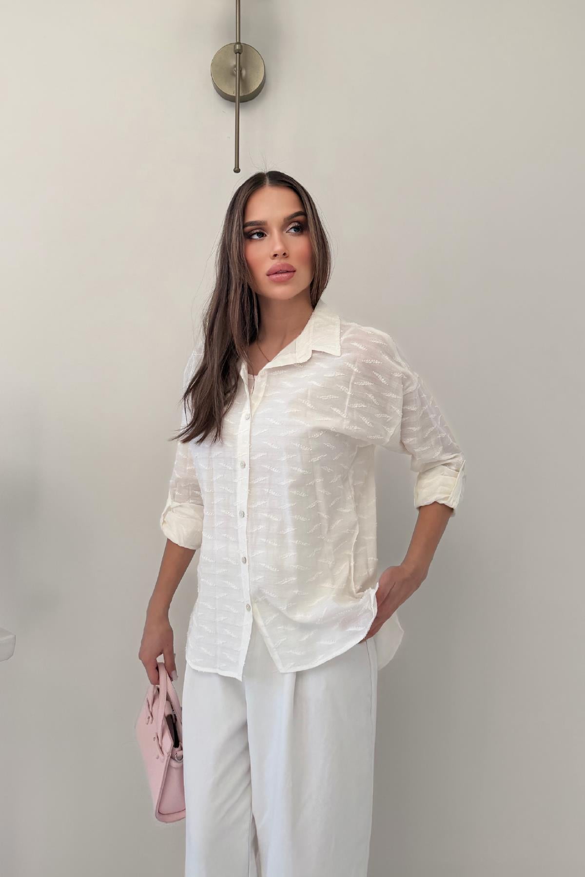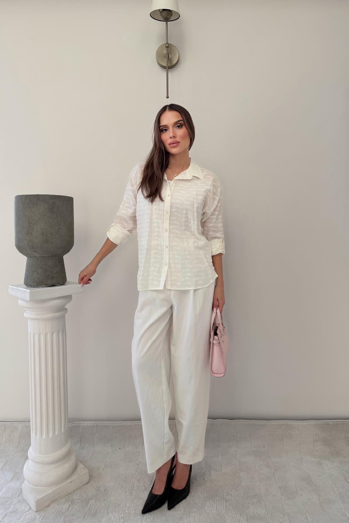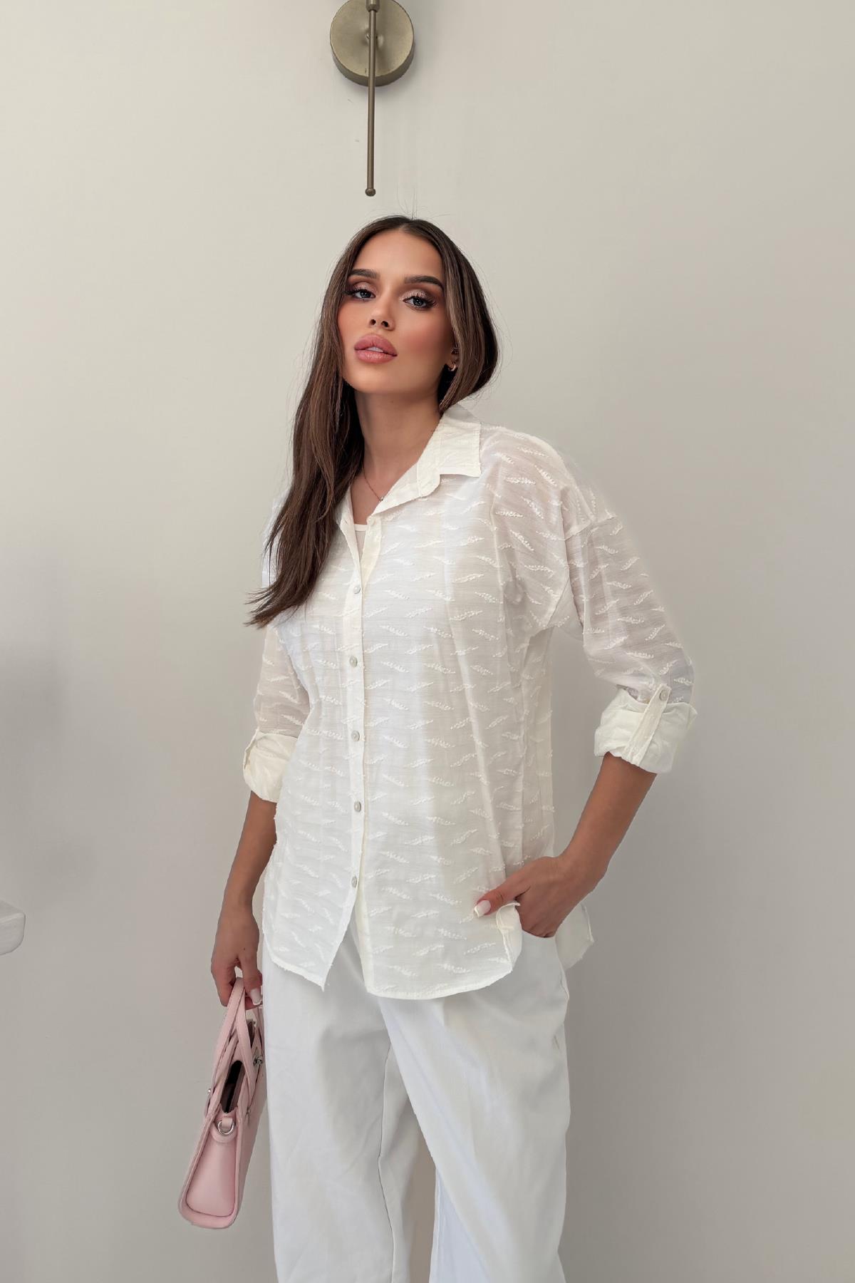 Ekru Jakar Dokulu Keten Gömlek (RB2940)