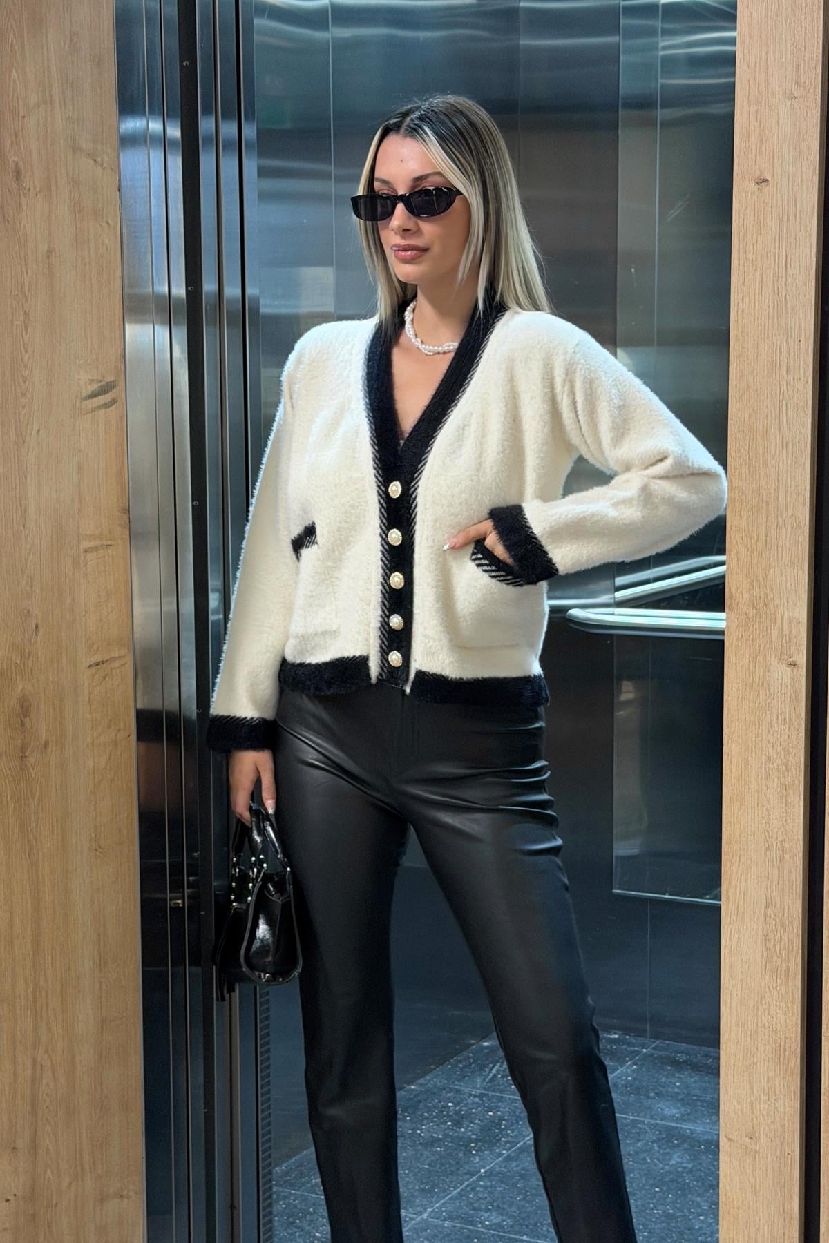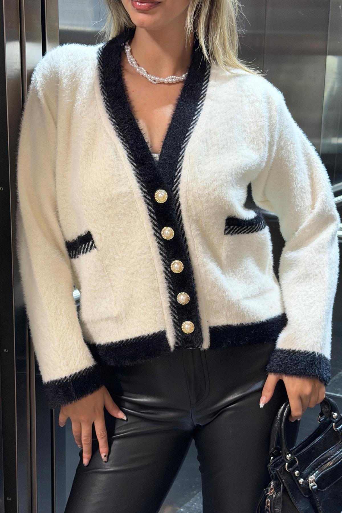 Kadın Düğme Detaylı Hırka Ekru (RB0717)