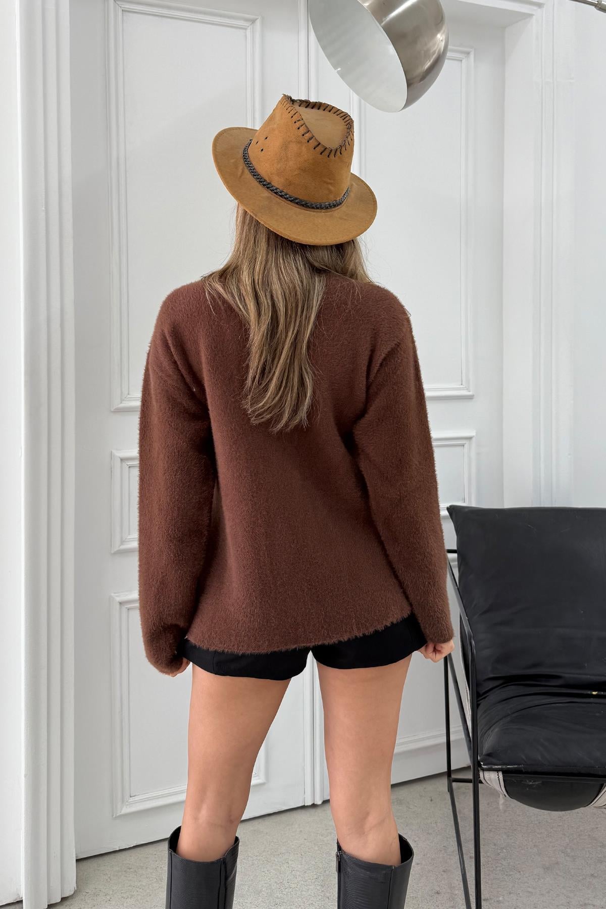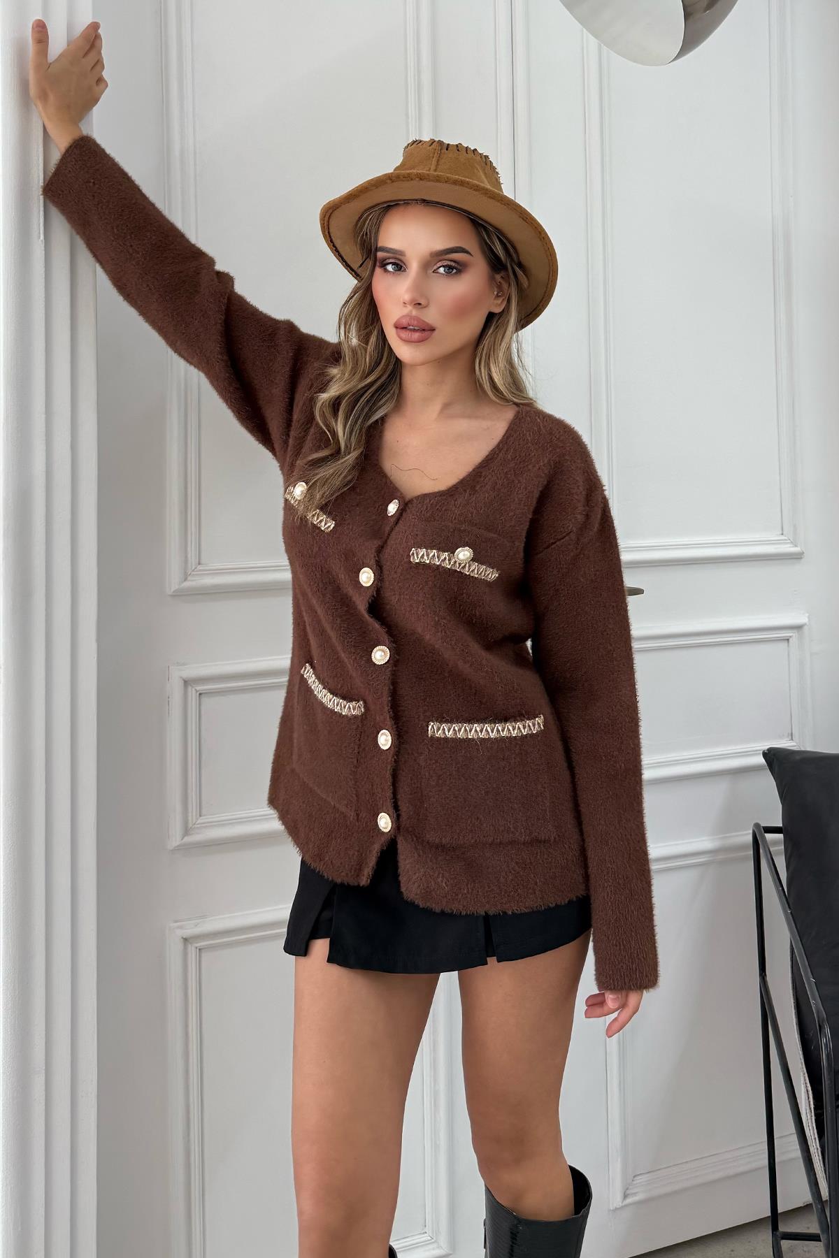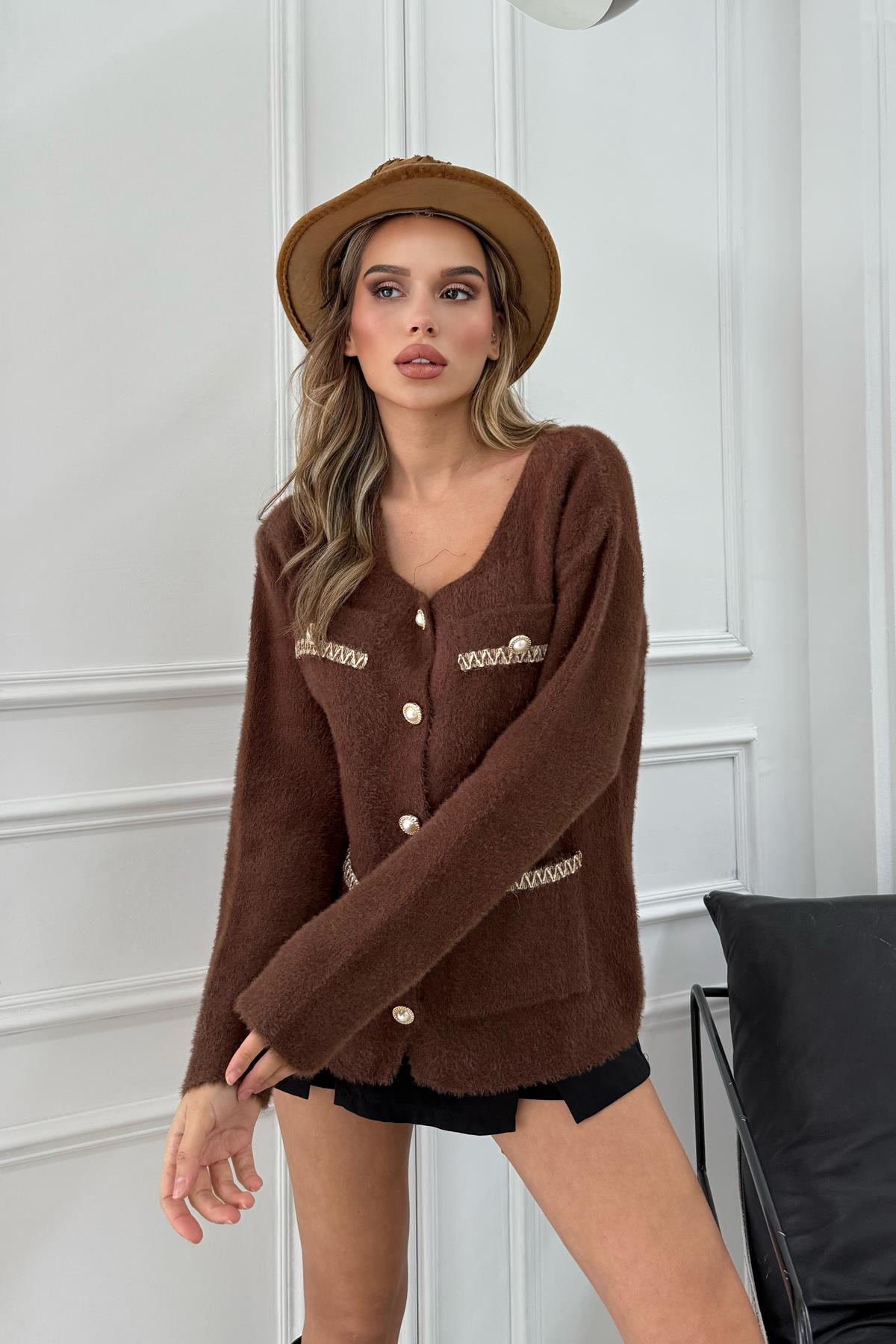 Kadın Düğme Detaylı Hırka Kahverengi (RB0715)