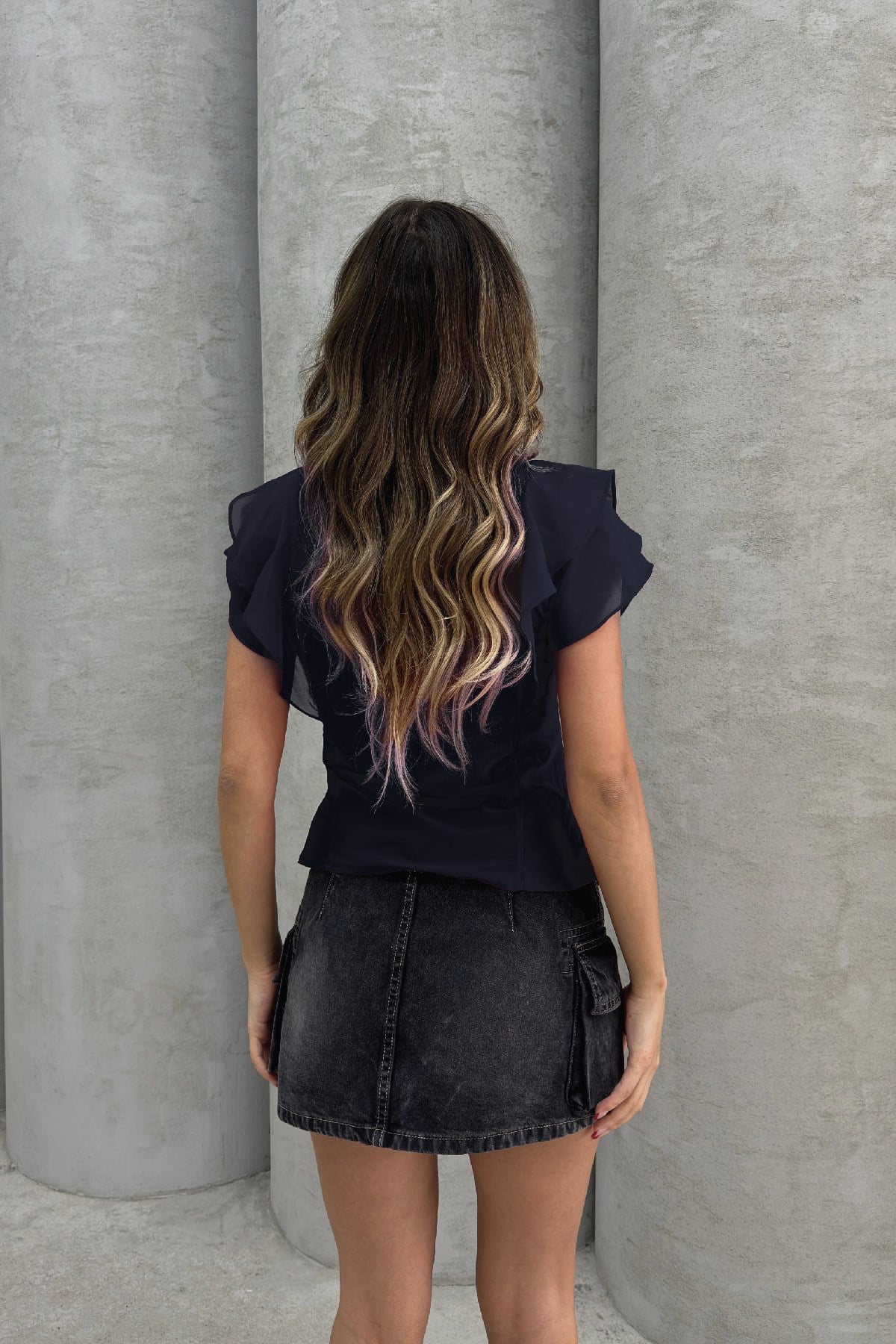 Lacivert Kolları Tül Detay Yelek (RB2670)