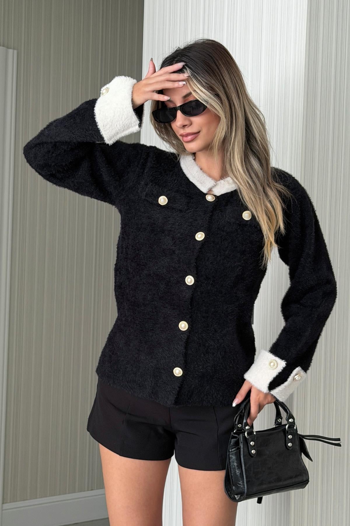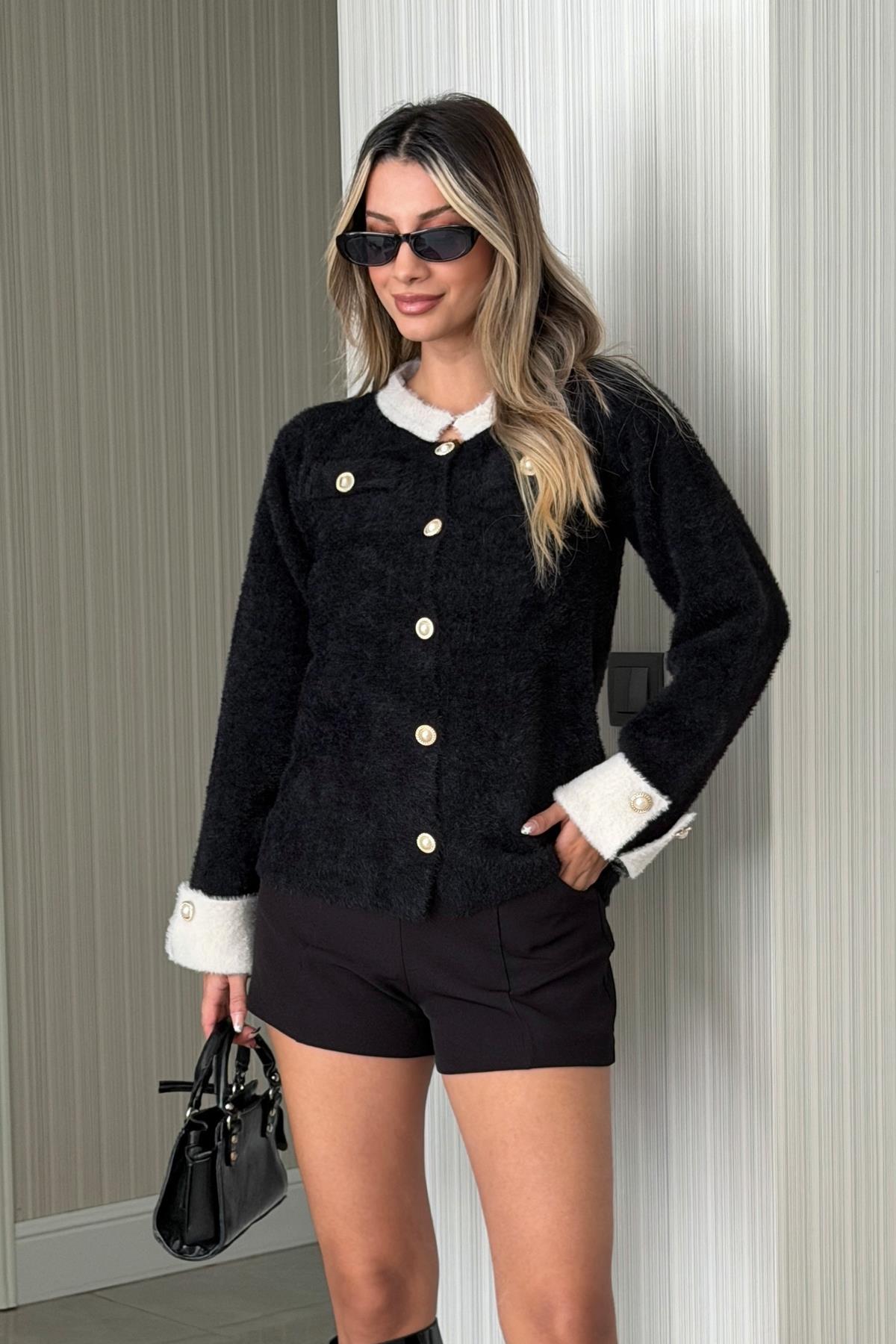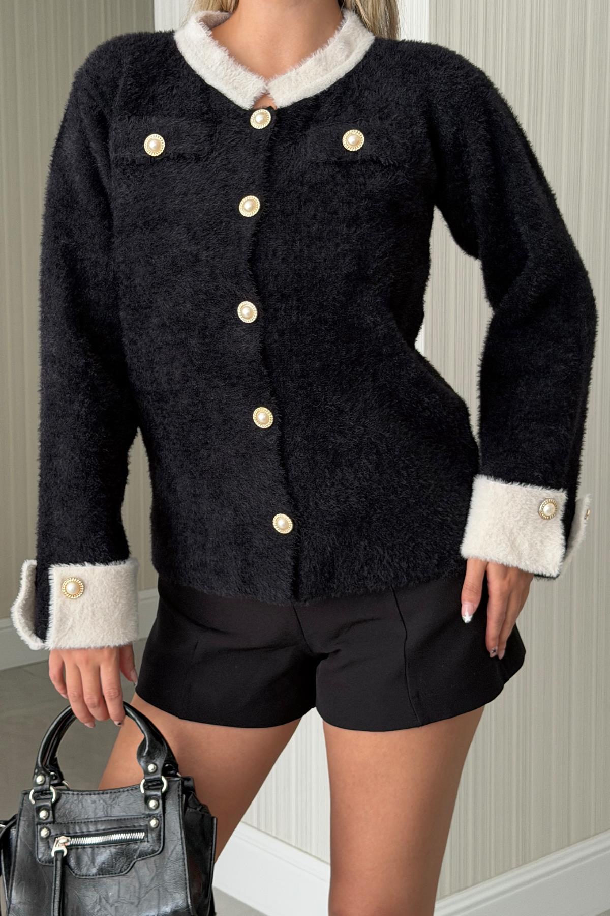 Kadın Maşet Detaylı Düğmeli Hırka Siyah (RB0713)
