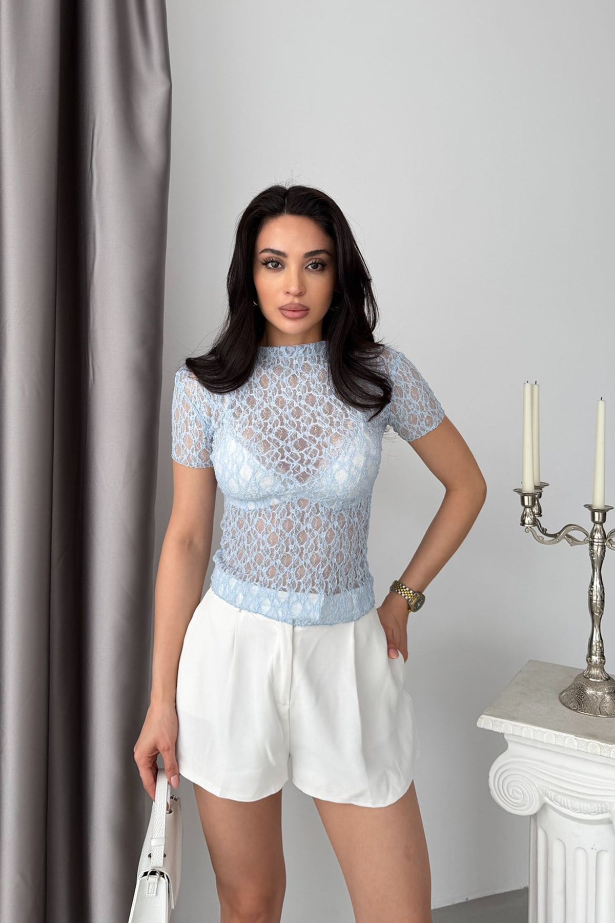 Mavi Kısa Kollu Dantel Body (RB7255)