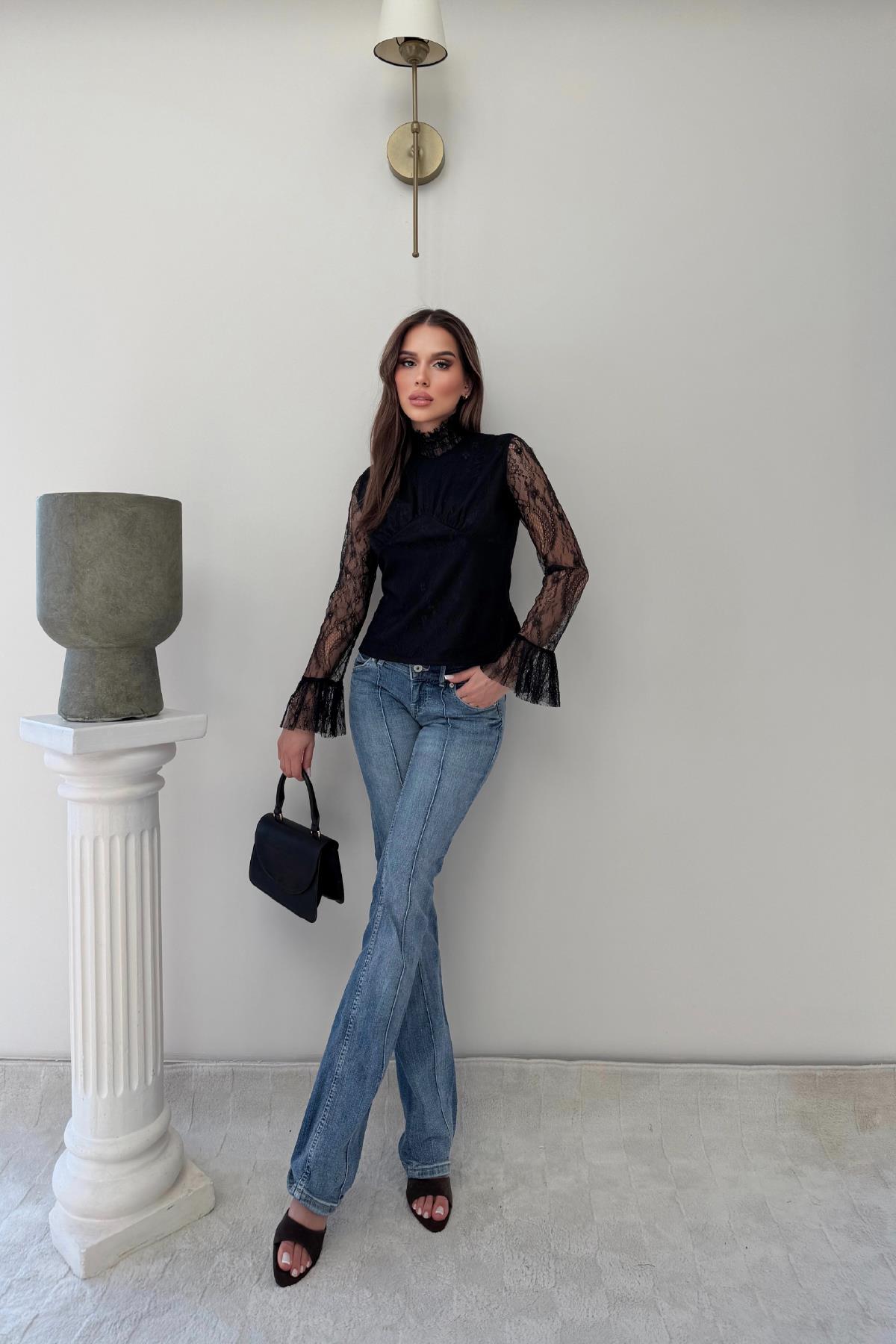 Siyah Halter Yaka Pens Detaylı Dantelli Bluz (RB2951)