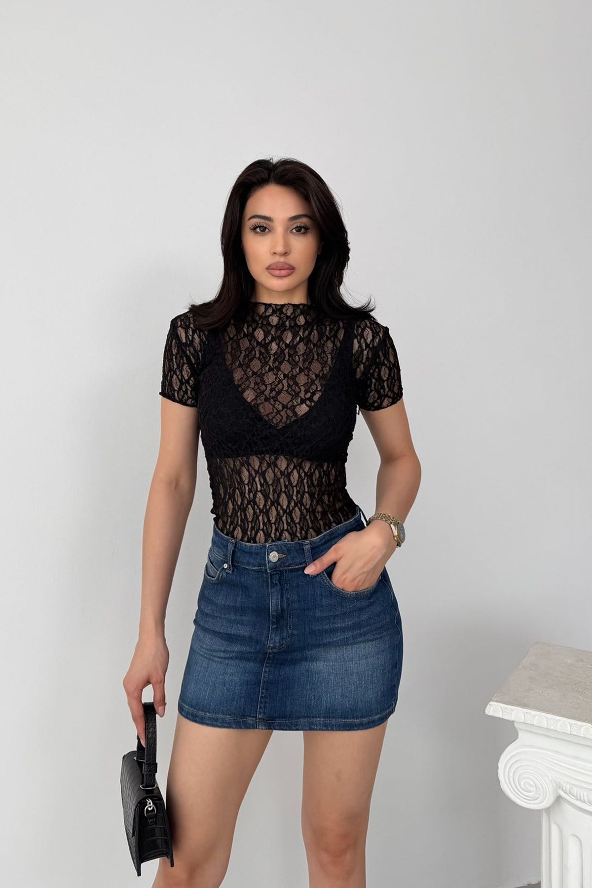 Siyah Kısa Kollu Dantel Body (RB7255)